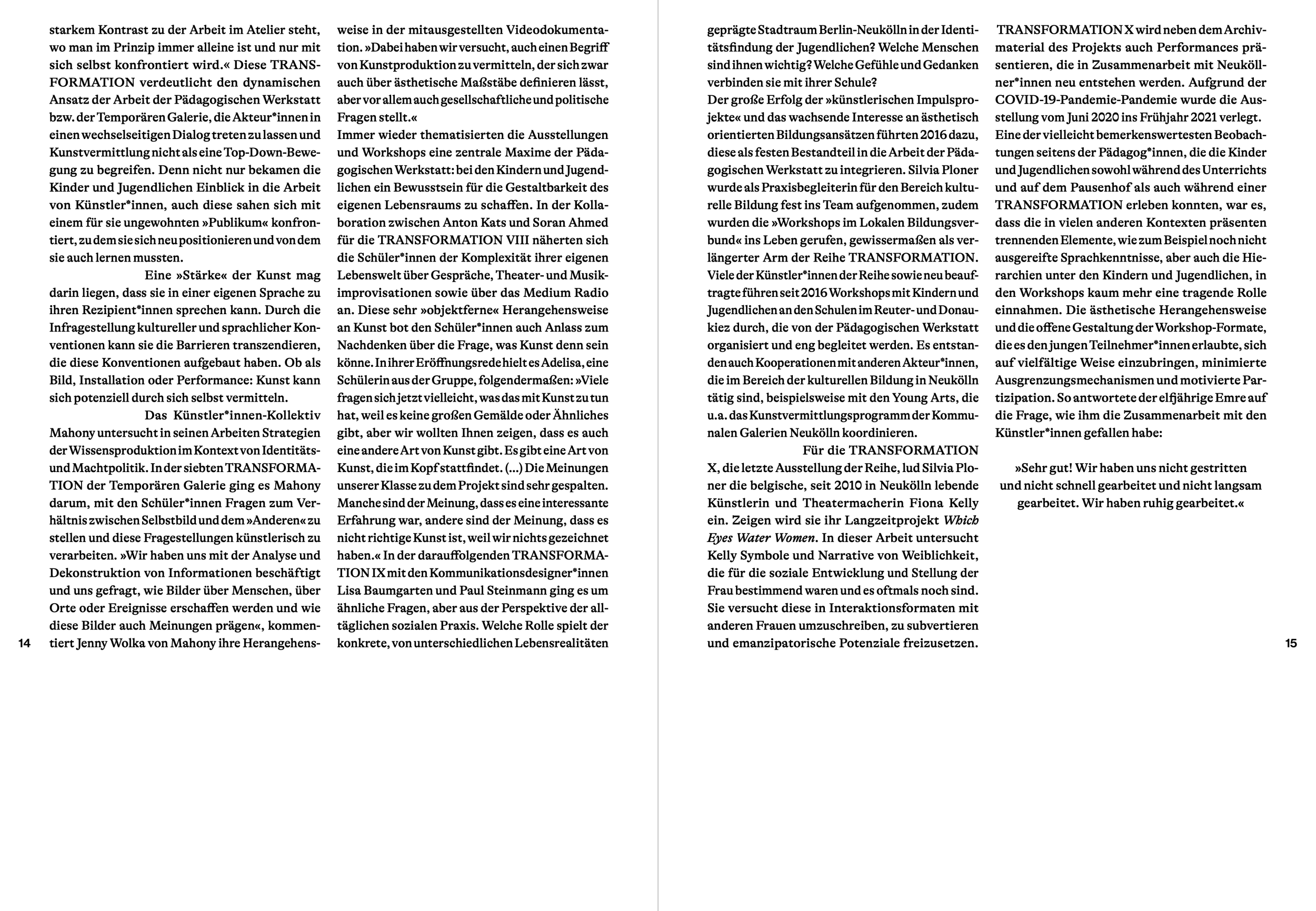 Herausgegeben von Silvia Ploner, Ida Schildhauer. Mit einem Vorwort von Silvia Ploner und Ida Schildhauer und Texten von Silvia Ploner und Shahin Zarinbal. Gestaltet von Sonja Erb. 239 Seiten, mit farb. Abb., Klappenbroschur, Berlin 2020. ISBN 978-3-00-066560-8.